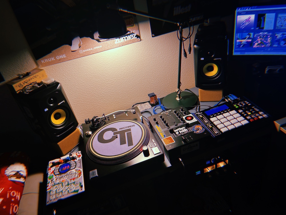 Chuckee:Sometimes it’ll start with some drums I found on a record, other times I’ll just be jamming on whatever I recently picked up from the conventions or the shop and I’ll hear something that makes me stop mid-groove. I like to separate out the tops and bassline from a sample and process them in their own channel track inside the 1K so that I have better control over what part is loud and what part needs to be more laid-back in the mix. I’m constantly speeding stuff up on the turntable and slowing it down inside the machine, I love the aliasing and the character it gives samples, drums and basslines especially. The cool thing about the MPC1000 is that it’s a fully 16-bit machine, it’s not a 12-bit or a 22kHz sampler, but it can do it if you downsample. And it doesn’t sound like an SP1200 – nothing on this planet sounds exactly like an 80s model, non-recapped SP ran through a Panasonic Ramsa or a Mackie CR1604 like they mighta done it back in the day, I’m sure – but I’ll be damned if it doesn’t have its own flavor. The same goes for my 404SX, there’s literally NO sampler I’ve ever used that sounds like it. It’s got a hi-fi sheen but a lot of weight behind whatever goes into it. The EQ that’s in it helps a lot with the character too.